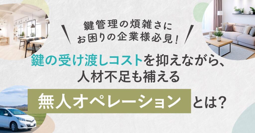 多くの企業が抱える“人手不足”の問題を、一挙に解消できる可能性を秘めているのが無人オペレーションです。鍵の受け渡しを対面で行う必要がなくなるため、①人件費の削減、②24時間対応の実現、③スタッフの負担軽減など、多岐にわたるメリットがあります。