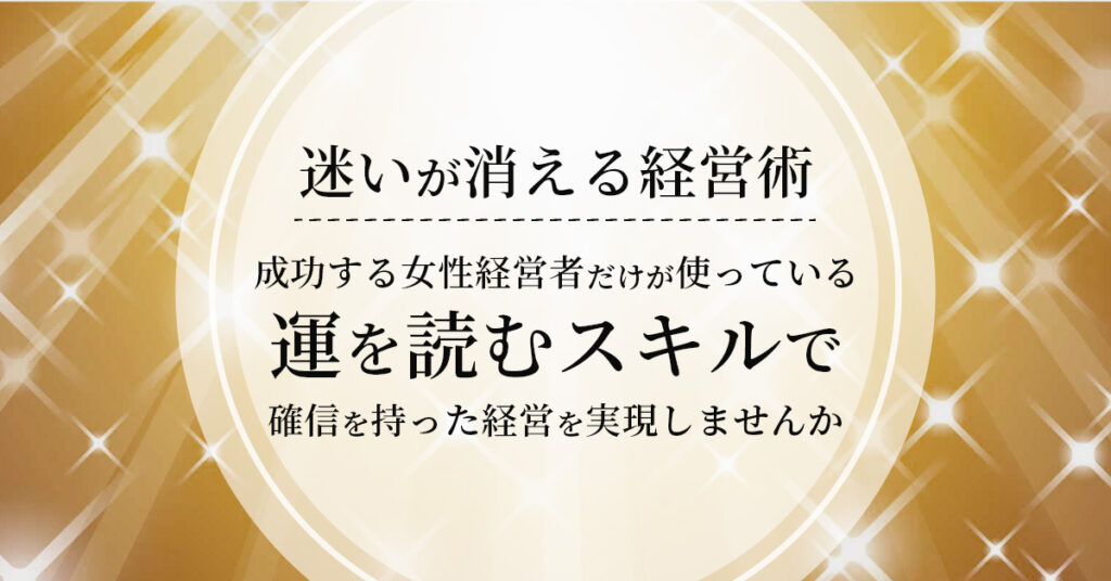 女性経営者として成功をつかむには、“情報”と“運”を掛け合わせた実践が欠かせません。「いつか動こう」ではなく、“今”行動を起こすことで、半年・1年先に他者と大きく差をつけられます。
