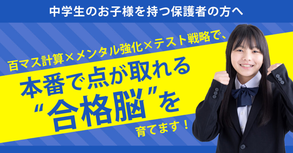 「勉強法のコツ」「成績アップの落とし穴」「本番で結果を出すための戦略」など、各種ノウハウを網羅。さらに“百マス計算”や“瞑想”といったユニークなメソッドもご紹介しますので、ぜひ最後までお読みください。