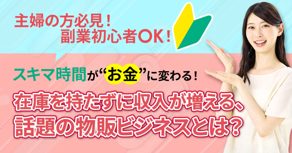 ここ数年、“主婦の在宅ワーク”として急速に人気が高まっているのが“物販ビジネス”です。物販ビジネスと一口に言っても、転売や輸入販売、ハンドメイド作品の販売など様々なスタイルがありますが、本記事でおすすめするのは、“在庫を持たない”ビジネスモデルです。