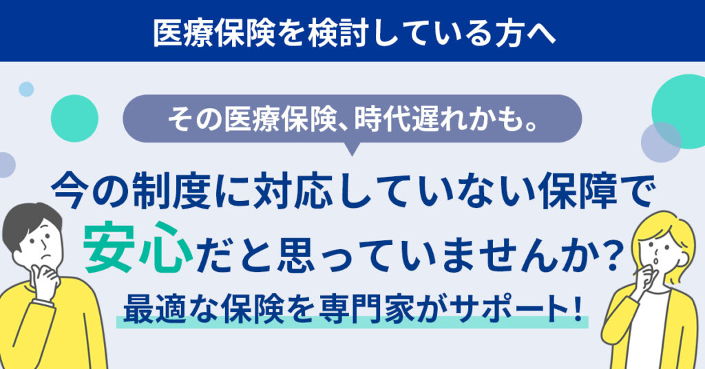 高額療養費制度が変更された今、数年前に加入した医療保険のまま放置していると、大きな損をする可能性があります。また、そもそも保険に未加入の方は、病気やケガでの急な出費に対応できないリスクも。
