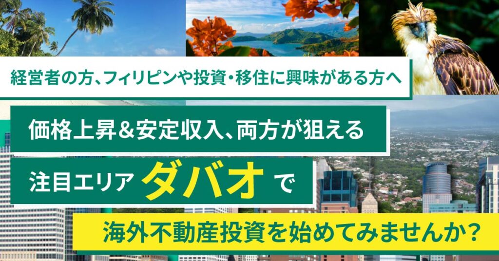 本記事では、成長前夜と言われるダバオで海外不動産投資を検討している方へ向けて、その魅力と具体的な成功戦略を徹底解説します。「絶好のチャンス」を見逃してしまう前に、ぜひ最後までご覧ください。
