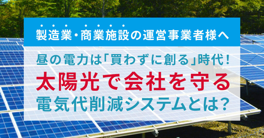 そんな中で注目されているのが、自家消費型太陽光発電システムです。昼間に多くの電力を使用する工場や商業施設では、発電した電気をそのまま施設内で活用できるため、電力会社からの購入量を大きく削減できます。”