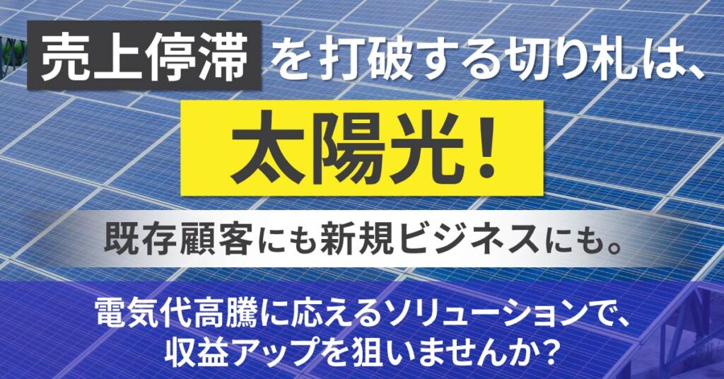 事業領域を広げたい企業にとって、太陽光関連はサポート体制や販売ルート、アフターフォローなど体系化しやすく、安定的なストックビジネスへ発展させやすい分野でもあります。