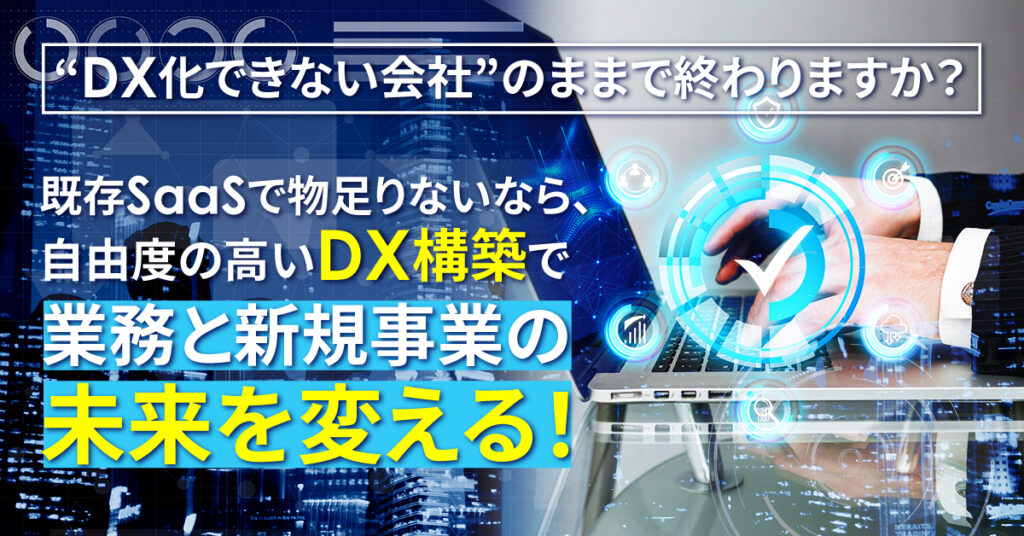 “DX化できない会社”を卒業したいなら、既存SaaSの枠を超え、自社独自のDXを構築することで“業務効率化”と“新規事業開発”を同時に推進する道が開けるでしょう。