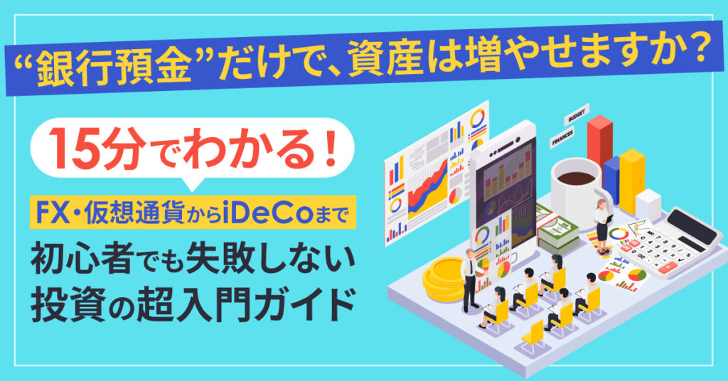そんな投資初心者の“不安”や“疑問”を一気に解消できるのが、本資料です。“FX、仮想通貨、株式、iDeCo、生命保険など、多岐にわたる投資商品を15分で概観できる超入門ガイド”としてご用意しました。