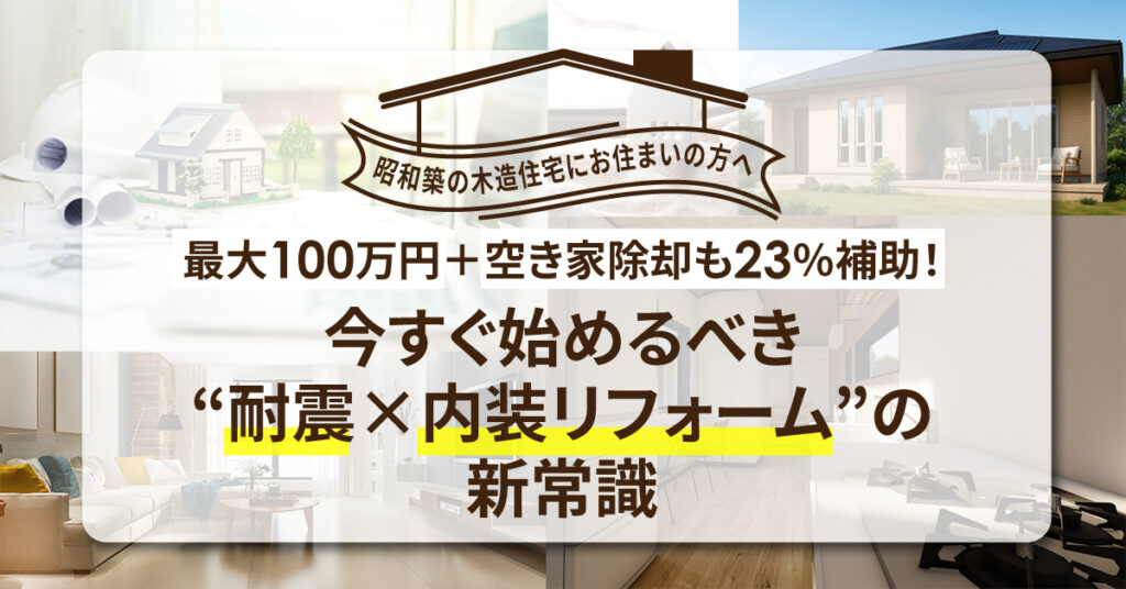 実は、昭和56年以前に建てられた木造住宅の場合、震度6強以上の地震が発生した際に“倒壊リスク”が高いと言われています。だからこそ、“今すぐ始める耐震×内装リフォーム”が重要。補助金を最大限活用すれば“最大100万円の補強工事費用”や“空き家除却に対する23%の補助”も狙えます。