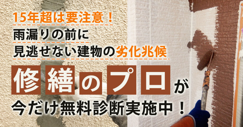 雨漏りや外壁剥離の前兆は、オーナーが気づかないうちに深刻化しているかもしれません。「雨漏り 点検 無料」で検索されている方、あるいは「建物診断を受けるかどうか」で迷われている方は、この機会にぜひご検討ください。