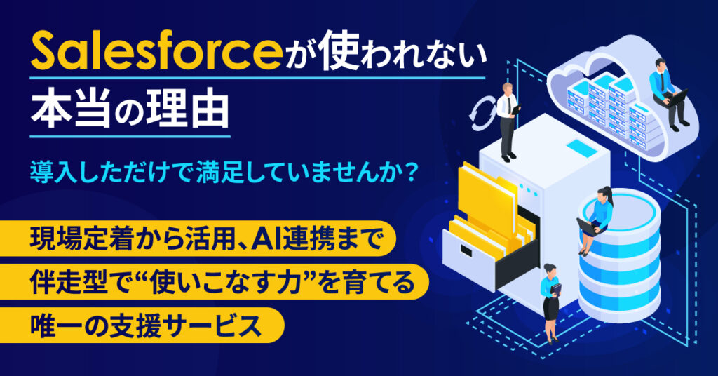 「導入したものの、まったく使われない」「現場が疲弊している」――こんな状態で止まっている企業は、Salesforceの本質的価値をまだ体感できていません。しかし、裏を返せば、定着と運用をしっかり仕組み化し、さらにAIとの連携を進めることで、競合他社に大きく差をつける“強力な武器”へと変貌させることもできるのです。