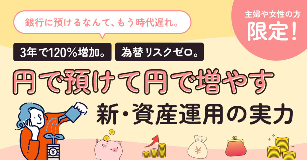 本記事で紹介した新しい運用方法は、元本保証がありながら3年で120%という高い利回りを実現できる、画期的な選択肢です。さらに、為替リスクがなく、健康告知も不要という点で、多くの女性にとって理想的な運用方法と言えるでしょう。