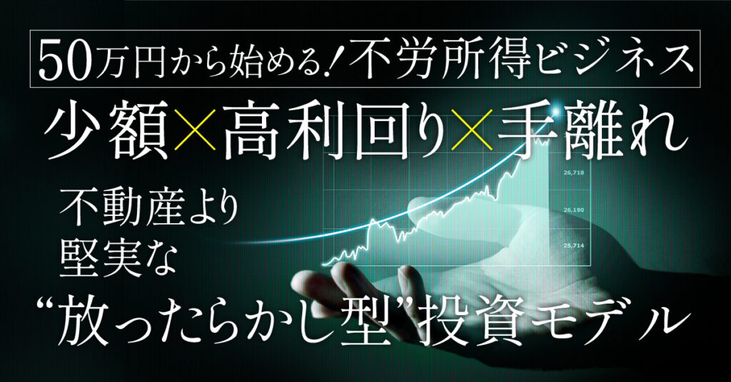 このように複数の投資を組み合わせることで、月10万円という目標に近づくことができます。特に、最近注目されている「高利回り×手離れの良さ」を実現したビジネスモデルへの投資は、不労所得を目指す投資家にとって魅力的な選択肢となっています。