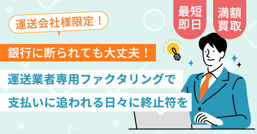 そこで本記事では、銀行融資を断られた運送会社でも利用できる「即日ファクタリング」について、その仕組みから具体的な活用方法まで詳しく解説します。運送業特有の資金繰り課題を解決し、安定した経営を実現するための実践的な情報をお届けします。