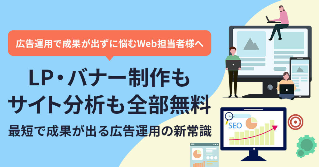 最近では、広告運用と制作を一体化したサービスが登場し、LP・バナー制作を無料で提供するケースが増えています。これにより、以下のようなメリットが得られます。