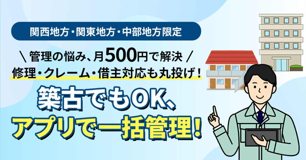 築古物件の管理でお悩みの方は、まずは資料請求から始めてみてはいかがでしょうか。月500円という革新的な価格で、これまでの管理の常識を覆すサービスを体験できるかもしれません。