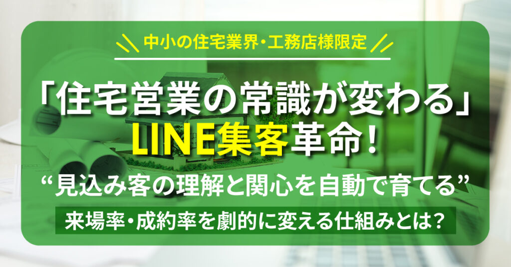 そこで本記事では、全国の住宅会社が実際に成果を出している「LINEを活用した見込み客育成の自動化」について詳しく解説します。来場率を3倍に向上させた実例をもとに、具体的な仕組みづくりから実践的な活用方法まで、すぐに取り入れられる内容をお伝えします。