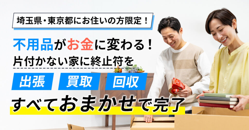 出張買取サービスの中でも、特に注目されているのが、買取と回収を一本化した総合サービスです。埼玉県と東京都では、地域に特化したサービスが登場し、利用者から高い評価を得ています。