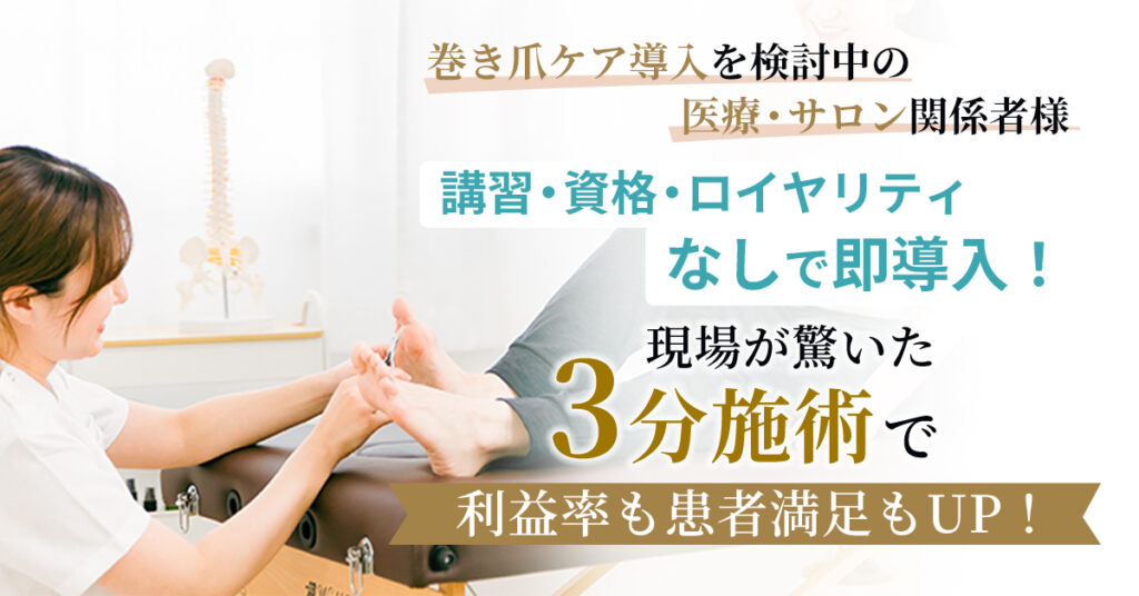 そこで本記事では、巻き爪矯正における資格の必要性について詳しく解説するとともに、資格不要で導入できる最新の巻き爪矯正器具の特徴や、わずか3分という短時間施術で患者満足度と売上向上を実現する方法について、医療・サロン関係者の方々に向けて具体的にご紹介します。
