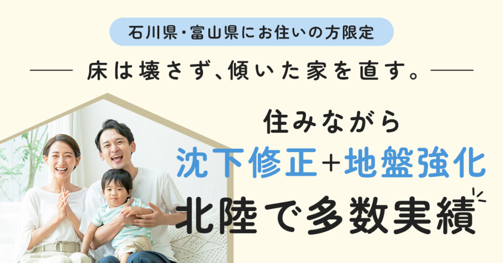 床の傾きは、地盤沈下や基礎の劣化によって発生し、放置すると建物全体の構造に影響を及ぼす可能性があります。しかし、適切な工法を選択すれば、日常生活を送りながら安全に補修することが可能です。