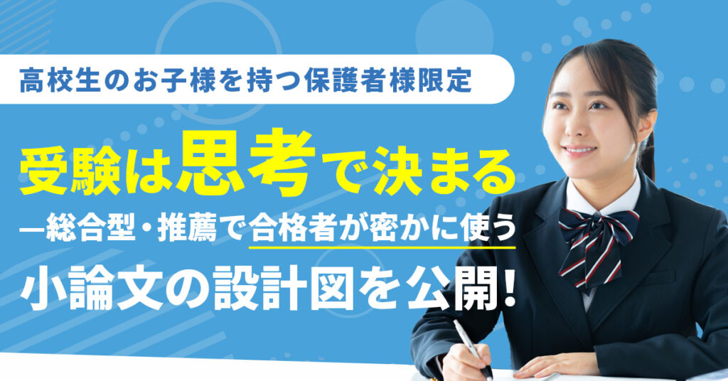 「小論文が全然書けない...」「何度も練習しているのに上達しない」そんなお子様の姿を見て、保護者の方も焦りと不安を感じていませんか?総合型選抜や学校推薦型選抜での合格を目指す中、小論文対策は避けて通れない重要な課題です。しかし、多くの高校生が小論文でつまずく本当の原因は、実は「文章力」ではなく「思考力」にあることをご存知でしょうか。