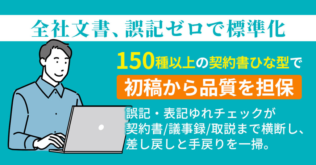そこで本記事では、契約書作成における時間短縮と誤記防止を両立させるための文書標準化の具体的な方法について解説します。テンプレートの活用、誤記・表記ゆれチェックの仕組み化、業務フローの最適化など、実践的なアプローチを紹介し、契約書業務の効率化と品質向上を実現するための道筋を示します。