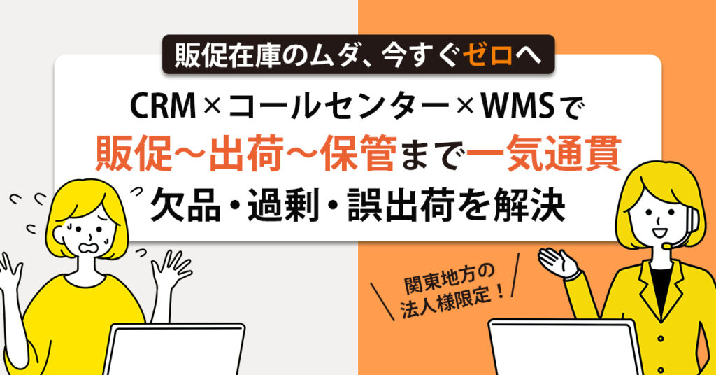 特に、CRM×コールセンター×WMSを統合した最新のサービスでは、販促から物流、販売まで一気通貫での管理が可能となり、これまでにない業務効率を実現できます。月間5万個の処理実績を持つ専門業者の活用により、貴社の販促品管理を劇的に改善することができるでしょう。