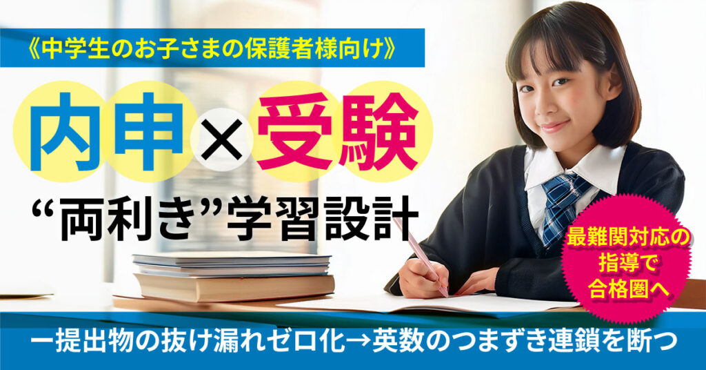 高校受験において、内申点と当日の試験結果の両方が重要です。どちらか一方に偏った対策では、志望校合格は難しくなります。ここでは、両方を効率的に伸ばす学習設計について解説します。