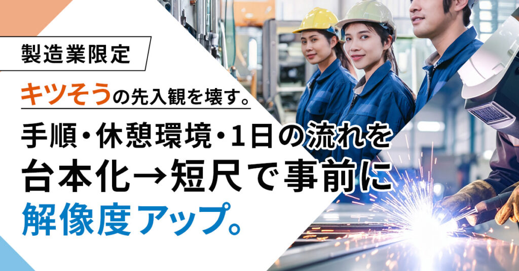 そこで本記事では、工場求人に応募が来ない真の理由を分析し、特に「きつそう」というイメージを払拭するための具体的な解決策として、動画を活用した新しい採用戦略について詳しく解説します。製造業の採用担当者が直面する課題を解決し、優秀な人材を確保するための実践的な方法をご紹介します。