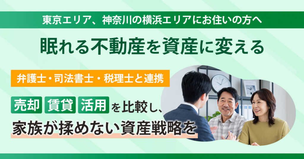 なお、東京都23区内および神奈川県の一部地域(横浜市・川崎市・藤沢市・茅ヶ崎市・平塚市)にお住まいの方向けに、売却・賃貸・活用の3案を比較表で可視化し、専門家による中立的なアドバイスを提供する資料があります。家族間での話し合いの材料としても活用できる内容となっています。