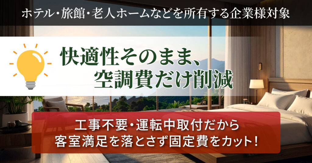 そこで本記事では、入居者の快適性を保ちながら空調費を削減する実践的な方法を詳しく解説します。工事不要で導入できる最新技術から、すぐに実践できる運用改善まで、24時間稼働施設ならではの省エネ対策をご紹介します。