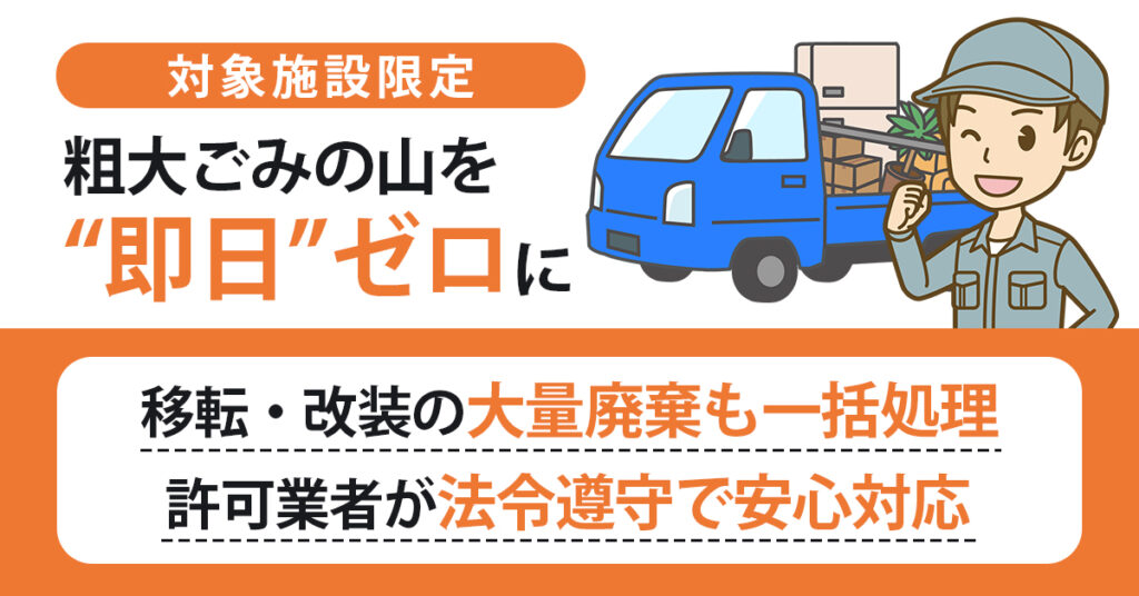 大型オフィスビルや商業施設で不用品の処理に困った経験はありませんか。「通常の回収業者に断られてしまった」「重量物や大型什器の処分方法がわからない」といった声をよく耳にします。特に移転や改装のタイミングでは、短期間で大量の不用品を処理する必要があり、通常の回収サービスでは対応できないケースが多く発生します。