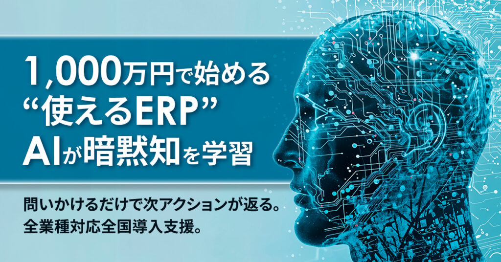 本記事では、ERP導入における暗黙知の問題と、それをAI技術で解決する新しいアプローチについて解説してきました。従来のERP導入で多く見られた失敗の原因は、企業に蓄積された暗黙知をシステムに反映できないことにありました。