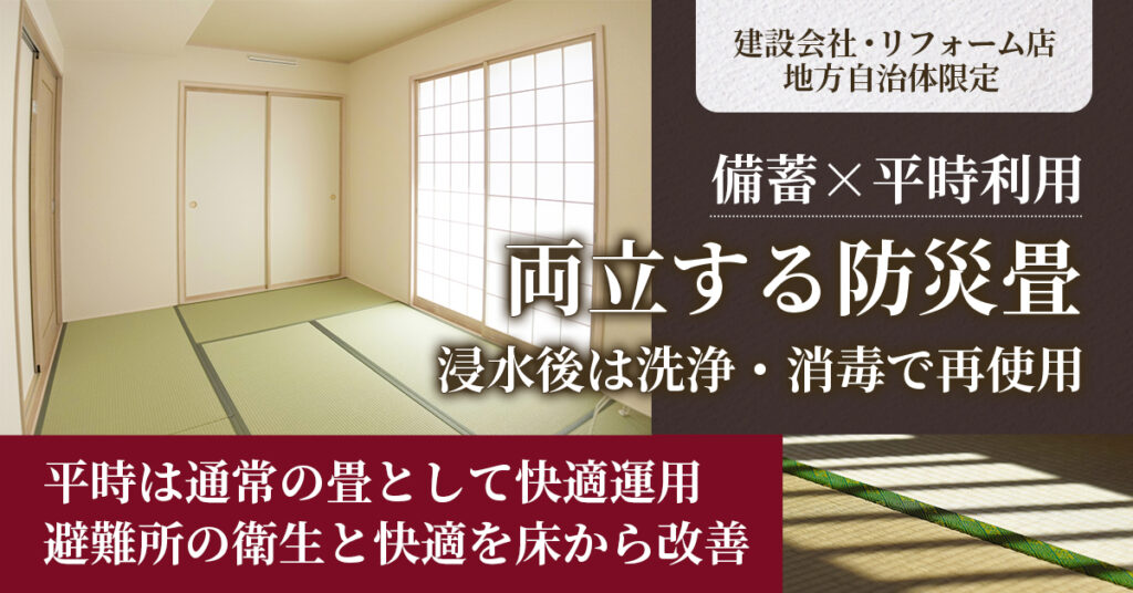 防災備蓄と平時利用を両立|洗浄可能な畳で避難所改革