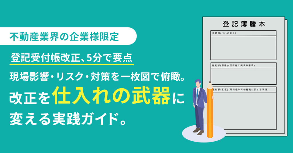 不動産業界において、仕入れの成否は事業の根幹を左右します。特に近年では、登記受付帳の改正という大きな変化の波が押し寄せており、従来の仕入れ手法だけでは競争力を維持することが困難になりつつあります。多くの不動産会社が改正への対応に追われる中、この変化を「コスト」ではなく「武器」として活用する新しいアプローチが注目を集めています。