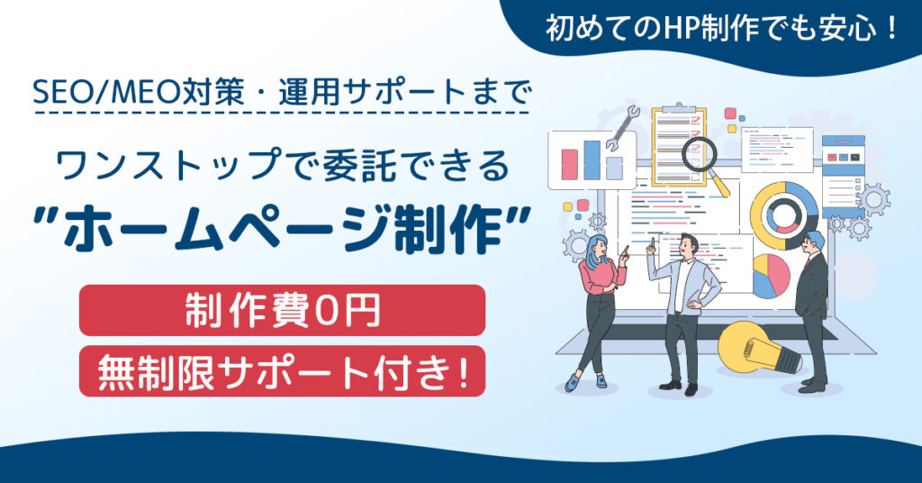 SEO/MEO対策から運用サポートまで一括委託可能な“ホームページ制作サービス”制作費0円・無制限サポート付きで効果的なWEB集客を実現