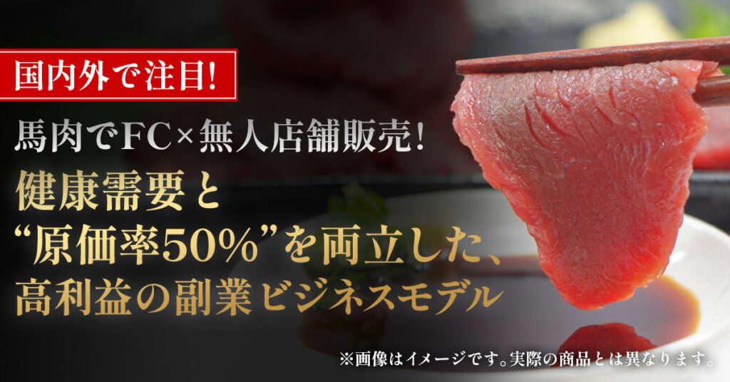国内外で注目!馬肉でFC×無人店舗販売!健康需要と“原価率50%”を両立した、高利益の副業ビジネスモデル