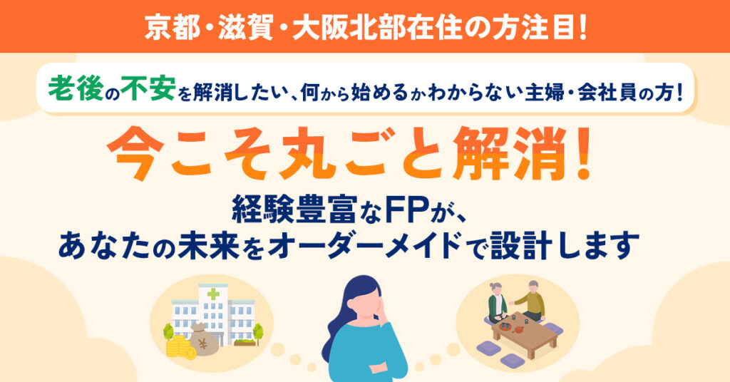 京都・滋賀・大阪北部在住の方注目!老後資金と相続の不安、今こそ丸ごと解消!経験豊富なFPが、あなたの未来をオーダーメイドで設計します