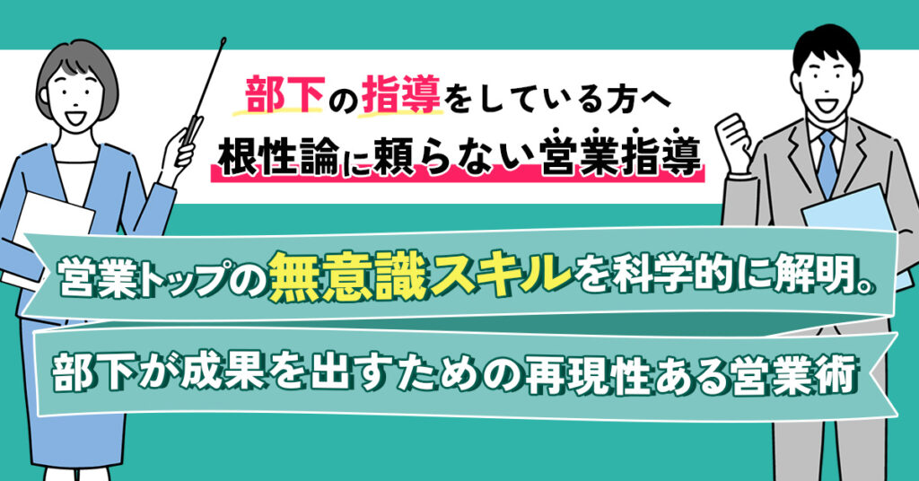 <部下の指導をしている方へ>根性論に頼らない営業指導 営業トップの“無意識スキル”を科学的に解明。部下が成果を出すための再現性ある営業術