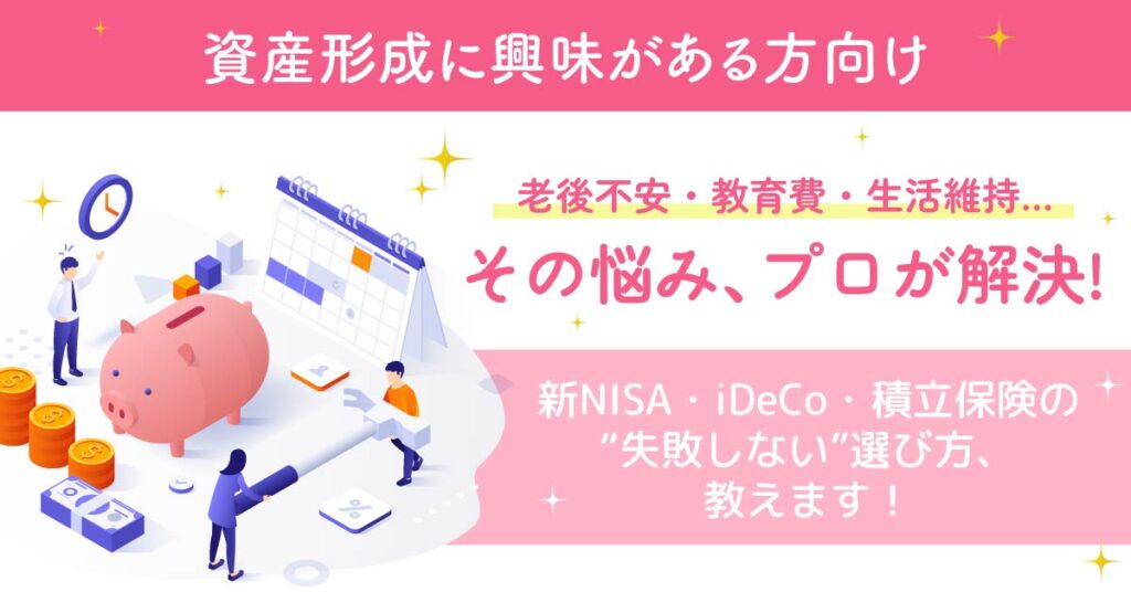 <資産形成に興味がある方向け>老後不安・教育費・生活維持…その悩み、プロの資産形成で一発解決!新NISA・iDeCo・積立保険の“失敗しない”選び方、教えます
