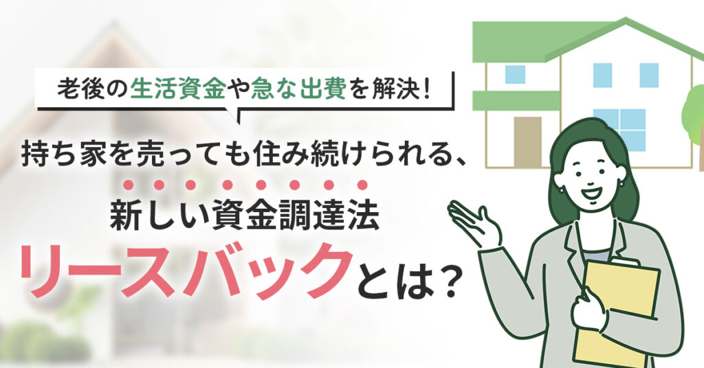 老後の生活資金や急な出費を解決!持ち家を売っても住み続けられる、新しい資金調達法”リースバック”とは?