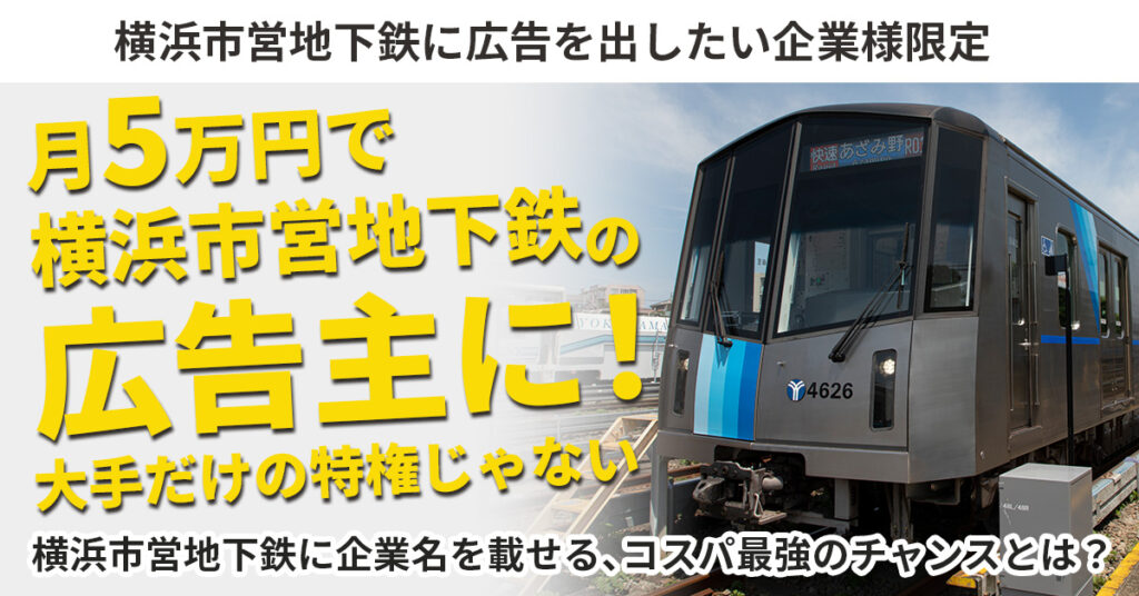 《横浜市営地下鉄に広告を出したい企業様限定》月5万円で“横浜市営地下鉄の広告主”に!大手だけの特権じゃない──横浜市営地下鉄に企業名を載せる、コスパ最強のチャンスとは?