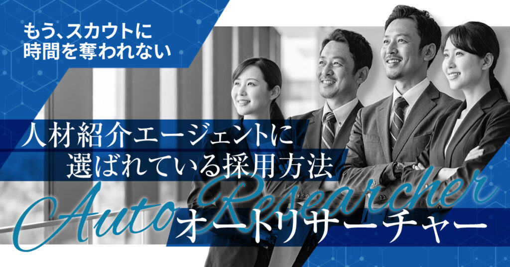もう、スカウトに時間を奪われないー人材紹介エージェントに選ばれている採用方法。Auto Researcher(オートリサーチャー)ー