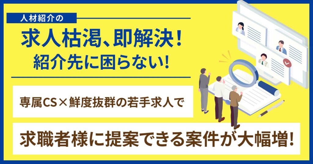 人材紹介の求人枯渇、即解決!紹介先に困らない!- 専属CS×鮮度抜群の若手求人で、求職者様に提案できる案件が大幅増!-