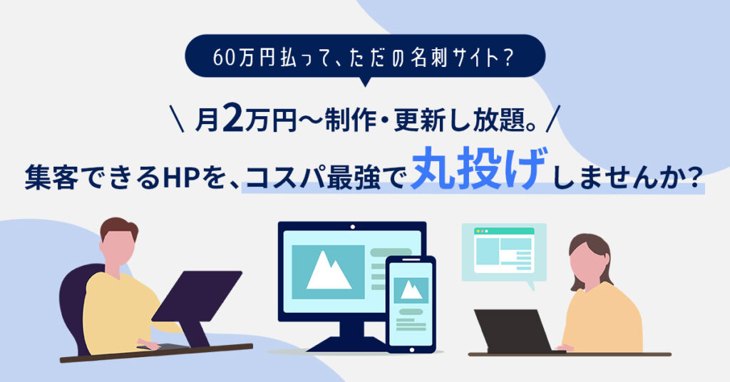 60万円払って、ただの名刺サイト?ー月2万円~制作・更新し放題。 集客できるHPを、コスパ最強で“丸投げ”しませんか?ー