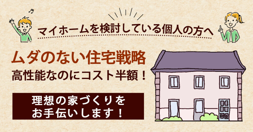 マイホームを検討している個人の方へ “ムダのない住宅戦略”で高性能なのにコスト半額 理想の家づくりをお手伝いします!