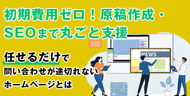 【初期費用ゼロ!原稿作成・SEOまで丸ごと支援】“任せるだけ”で問い合わせが途切れないホームページとは