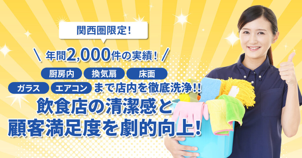 《関西圏限定!》年間2,000件の実績!厨房内、換気扇、床面、ガラス、エアコンまで店内を徹底洗浄!!飲食店の清潔感と顧客満足度を劇的向上!