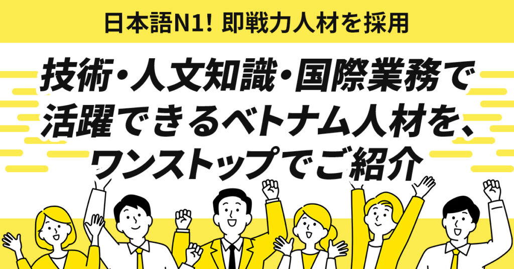 日本語N1!即戦力人材を採用ー技術・人文知識・国際業務で活躍できるベトナム人材を、ワンストップでご紹介ー