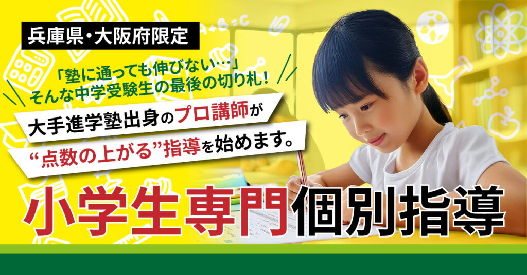 《兵庫県、大阪府限定》「塾に通っても伸びない…」そんな中学受験生の最後の切り札! 大手進学塾出身のプロ講師が“点数の上がる”指導を始めます。