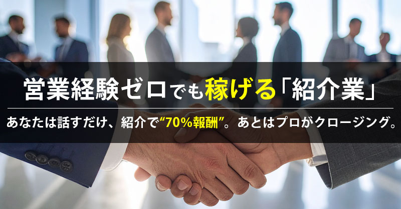 営業経験ゼロでも稼げる「紹介業」——あなたは話すだけ、紹介で“70%報酬”。あとはプロがクロージング。