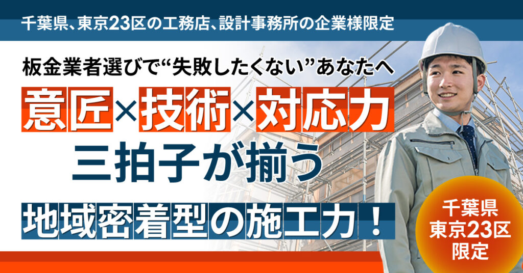 《千葉県、東京23区の工務店、設計事務所の企業様限定》板金業者選びで“失敗したくない”あなたへ 意匠×技術×対応力の三拍子が揃う、地域密着型の施工力!